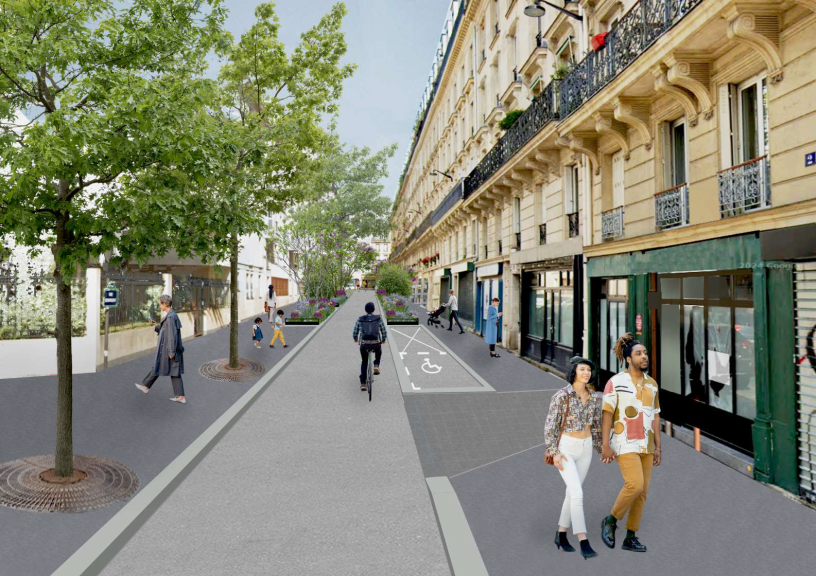 La transformation de la chaussée (d'une largeur de 3,4 mètres face au jardin Villemin-Mahsa Jîna Amini, avec un plateau surélevé, et d'une largeur de 5 mètres sur le reste du tronçon pour permettre un meilleur partage de l'espace public) ;