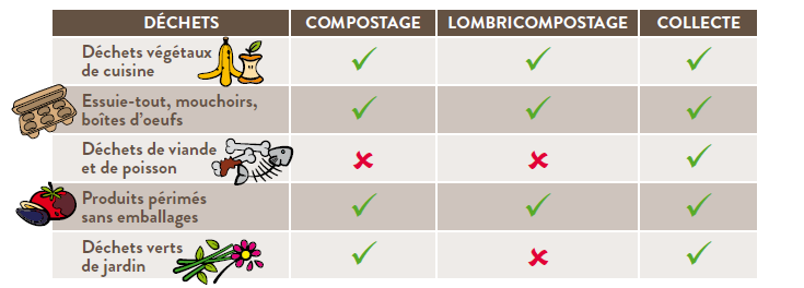 Le lombricompostage, le compostage et la collecte séparée des déchets alimentaires sont trois solutions complémentaires qui présentent chacune leurs particularités :