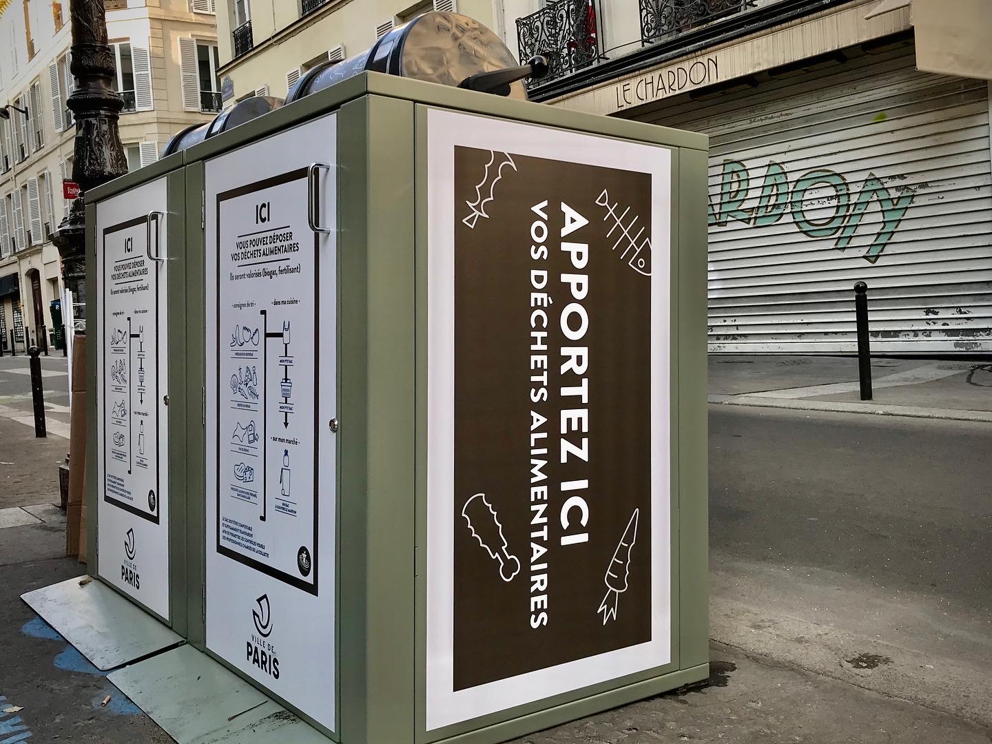 Déployées dans tout Paris pour encourager et faciliter le tri des déchets alimentaires, ces bornes de collecte sont également appelées « points d'Apport Volontaire » (PAV).