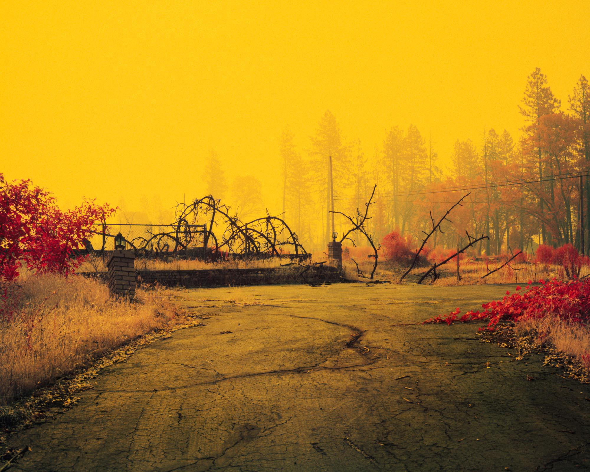 « J'ai rencontré ceux qui reconstruisent leur "paradis" dans un lieu désormais profondément inhospitalier. Par un film diapositive infrarouge, je convoque la mémoire des flammes gravée sur leurs rétines, une hallucination quotidienne alors qu’ils bâtissent, la peur du prochain mégafeu au ventre. Paradise est une parabole sur notre capacité à (nous) reconstruire après des incendies dont les causes sont, de façon croissante, humaines. »