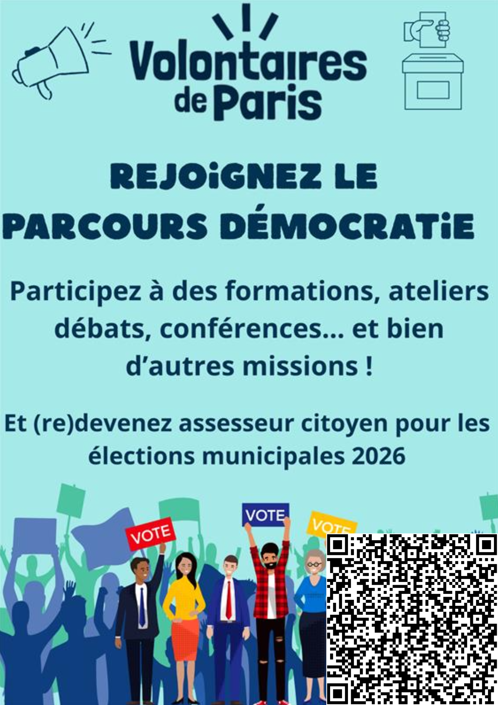 Inscrivez-vous sans plus attendre au « Parcours Démocratie » proposé par la Ville de Paris en remplissant le formulaire disponible ici ou candidatez directement en écrivant à l'adresse [assesseur.citoyen puis paris.fr après le signe @]nffrffrhe.pvgblra@cnevf.se[assesseur.citoyen puis paris.fr après le signe @].