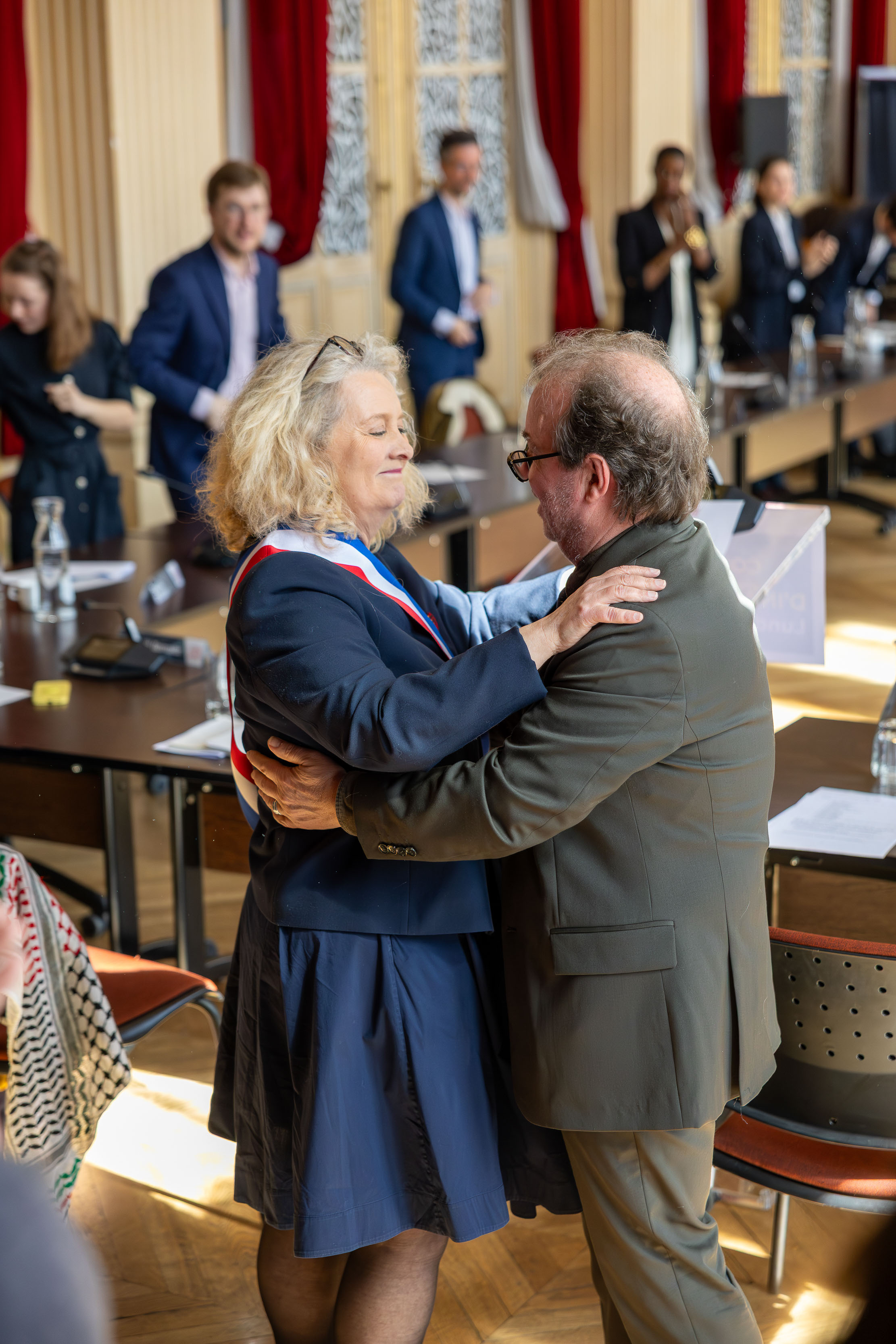 Remise de l'écharpe à la Maire ;