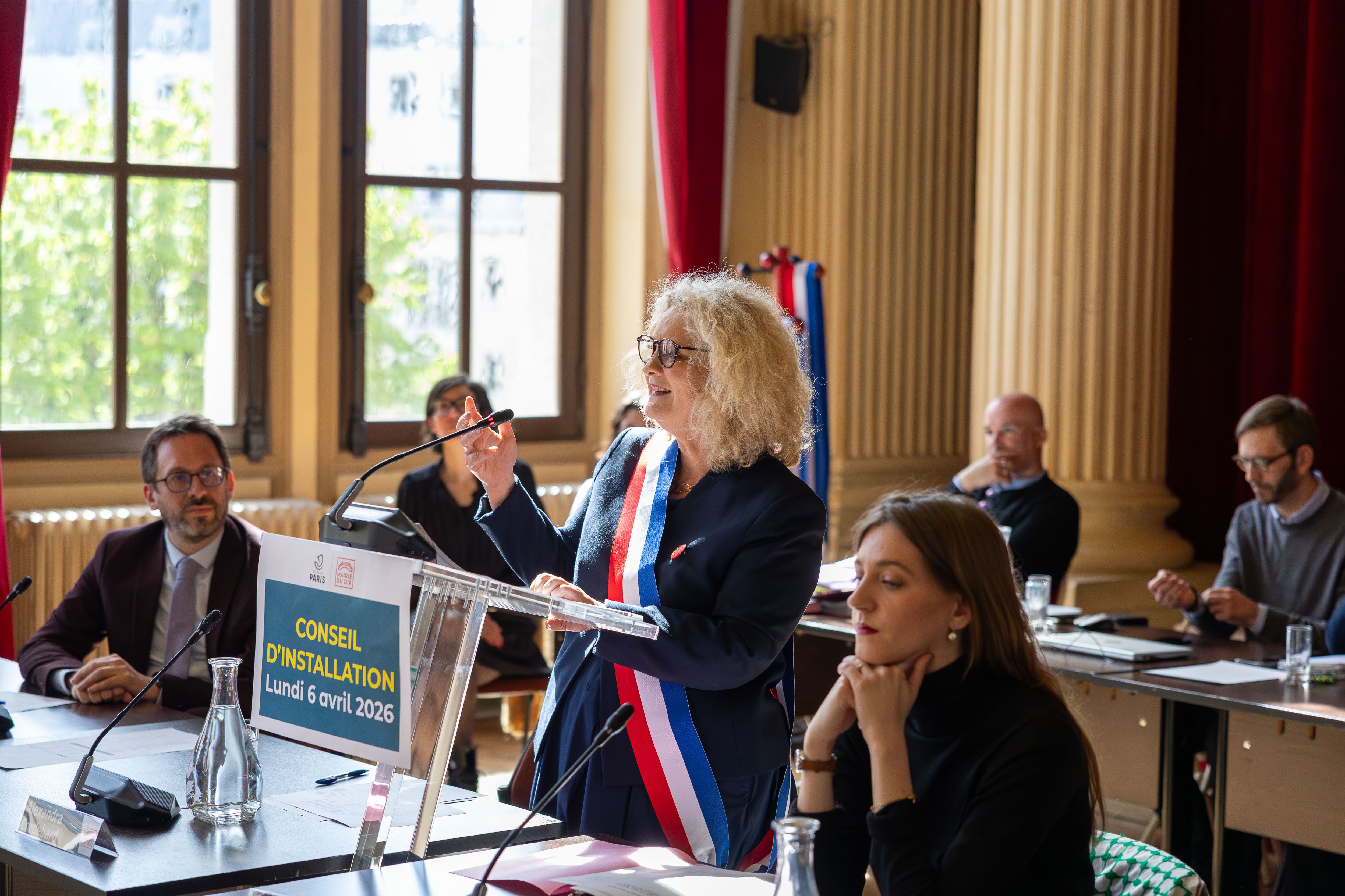 À l'issue du vote à bulletin secret, Alexandra Cordebard a été réélue Maire du 10e arrondissement à la majorité absolue et s'est exprimée lors d'un discours solennel une fois les résultats du scrutin annoncés.