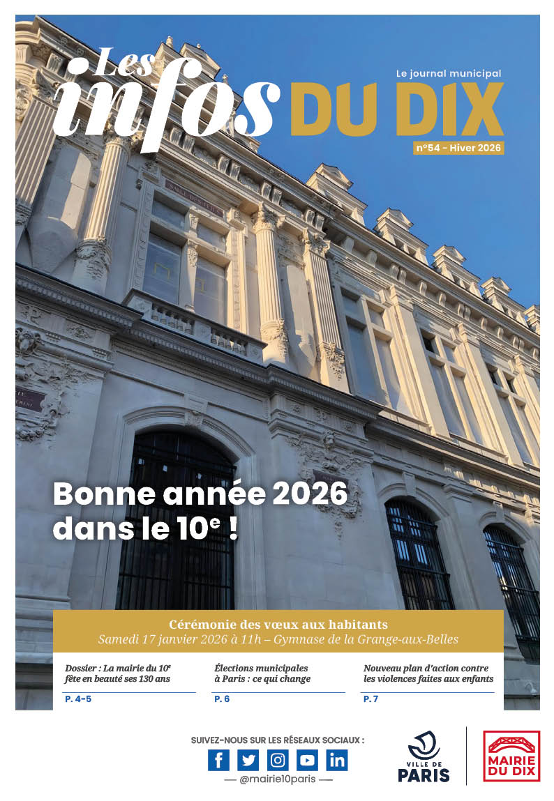 Les Infos du Dix, c'est le magazine d'actus municipales du 10e. Il paraît tous les trimestres, et il est distribué gratuitement dans toutes les boîtes aux lettres de l'arrondissement !