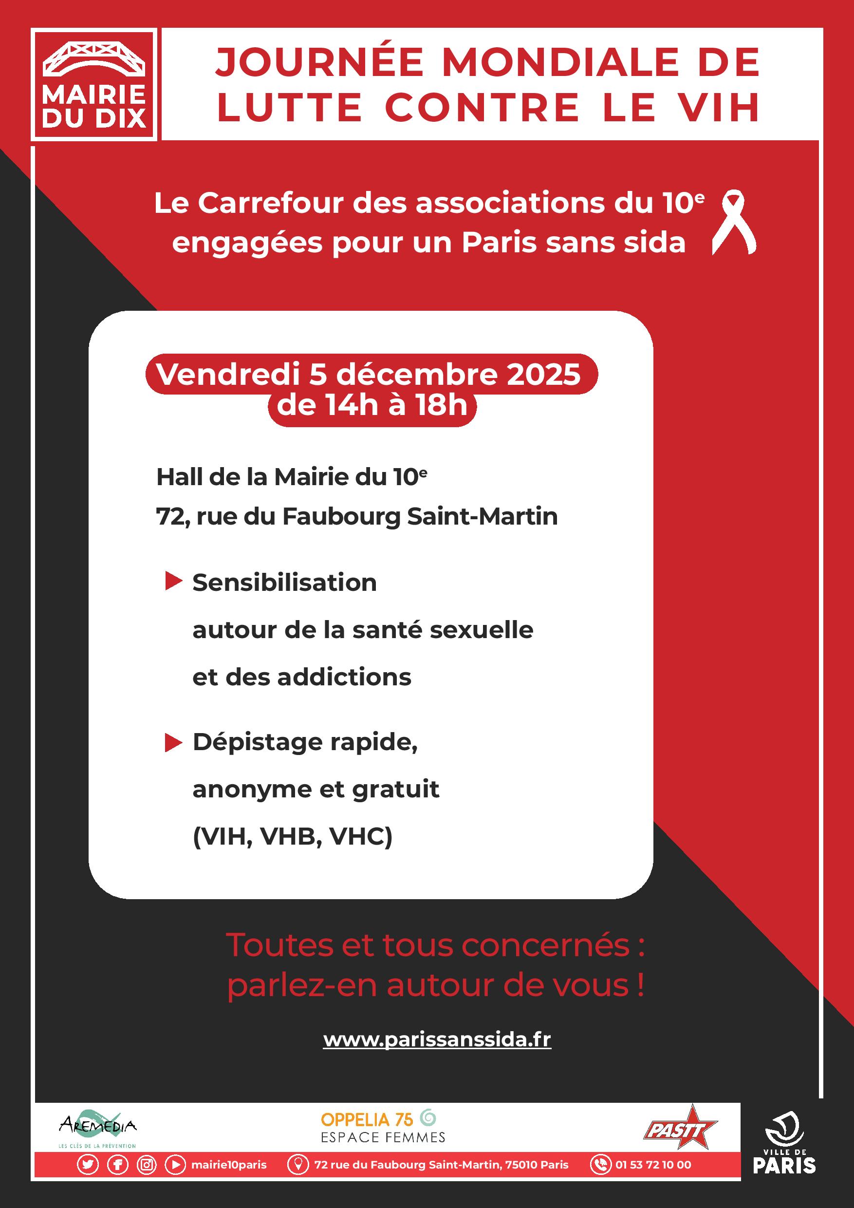 Comme chaque année à l'occasion de la Journée mondiale de lutte contre le sida, la Mairie du 10e organise un après-midi d'échanges, d'information et de sensibilisation